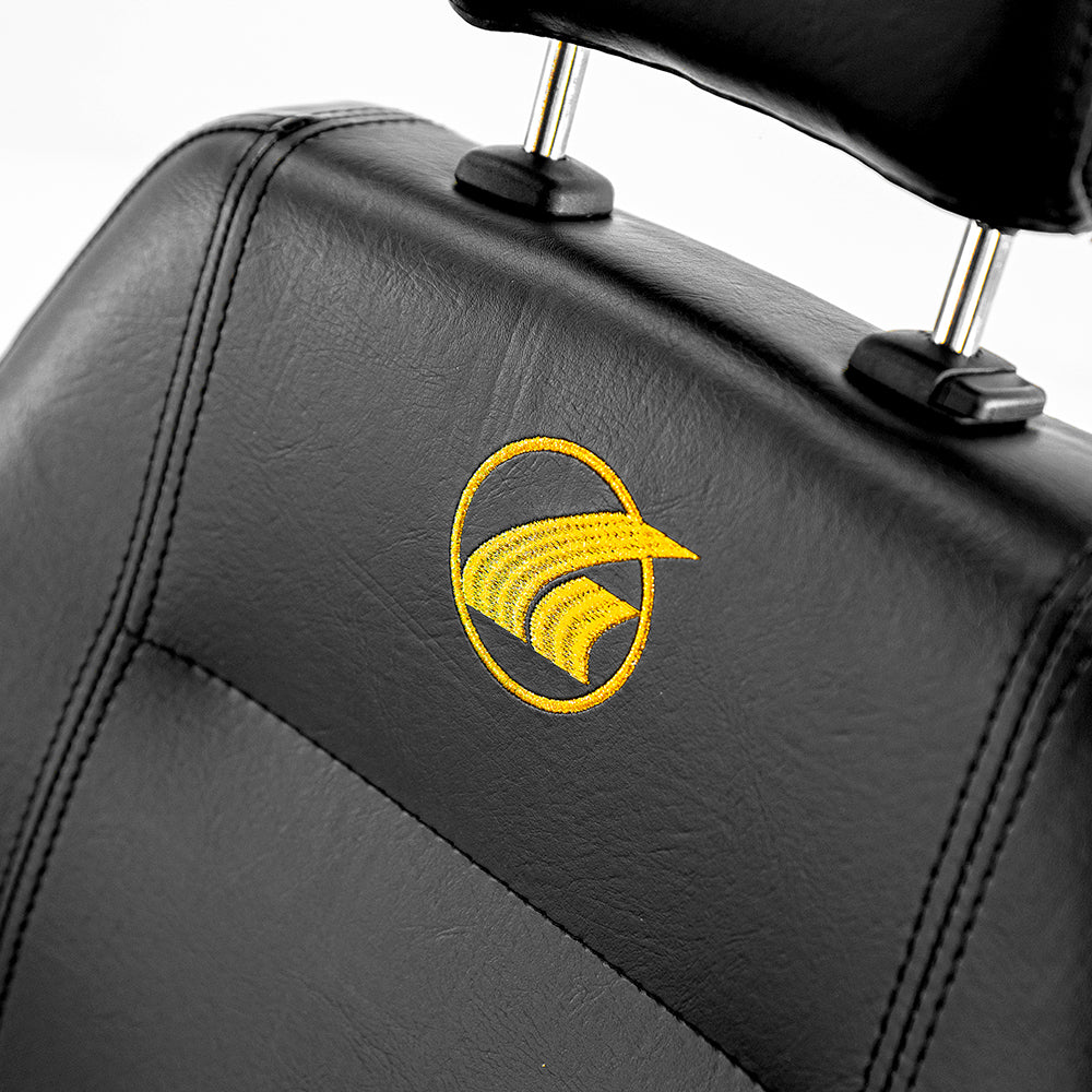- The adjustable high-back captain’s seat and flip-back armrests make for all-day comfort and ease of transfer.