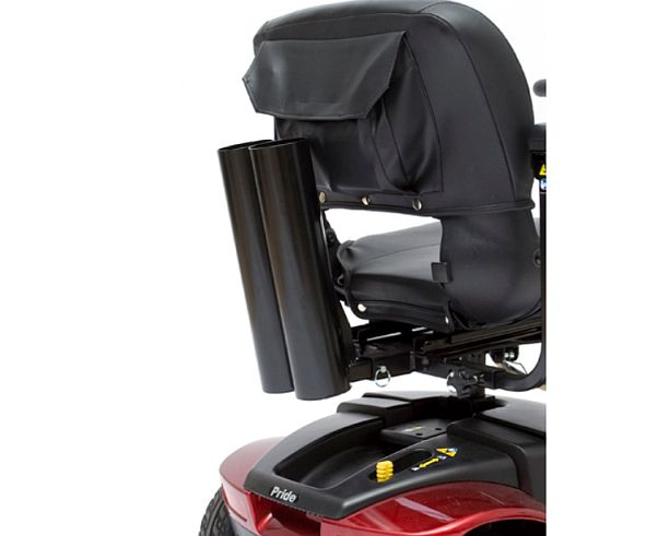 This Tube Style Cane/Crutch Holder attaches to the universal accessory holder (1' square shape receiver) mounted on the back of your Pride scooter seat.