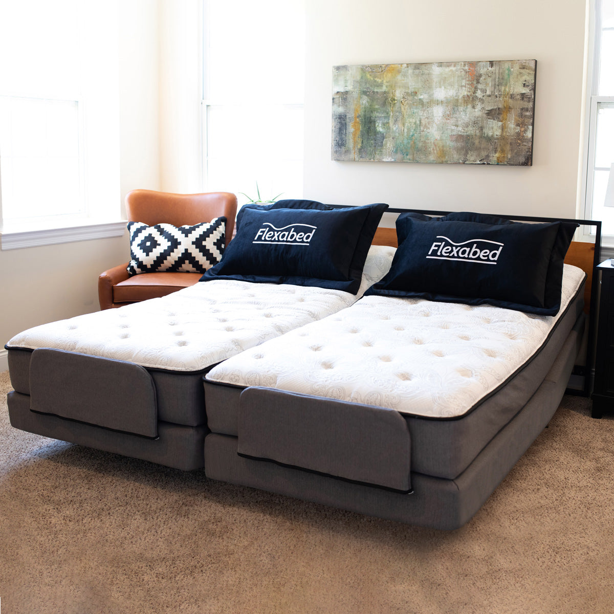The Flexabed Premier Adjustable Bed offers a variety of mattress styles. With six available mattress options you can choose the perfect fit for you. The traditional Innnerspring mattress is available in soft, medium, or firm. The Innerspring/Memory Foam Combination gives you the support of an innerspring with the luxury of memory foam. The Memory Foam Core has 2 inches of gel-infused memory foam to cradle every contour and relieve pressure. With 3 inches of smooth-top gel-infused memory foam, the Gel Memory Foam mattress creates a cooler sleeping surface. The soft feel and dynamic support of a Latex mattress provides the experience of a luxurious, custom-molded mattress. A Low Profile mattress will reduce the overall height of your bed by 5 inches. Meticulously crafted, these mattresses feature a knit fabric quilt panel, an elegant designer border, and taped edges.