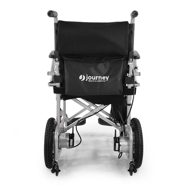 The Journey Air Power Chair weighs just 37.5 pounds fully assembled. When the battery is removed the Air weighs only 35 pounds. Traveling with the Air could not be easier. When you are ready to transport or store your power wheelchair just one pull on the seat handle folds it up. The back of the powerchair folds down to make it even easier to store. The Journey Air Power Folding Chair folds in seconds and is perfect for travel while also saving storage space.