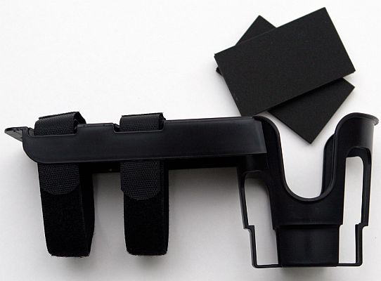 - Attaches simply with velcro straps and grips with foam pads