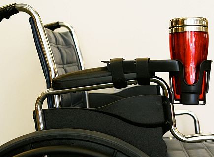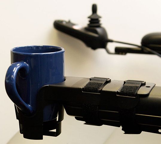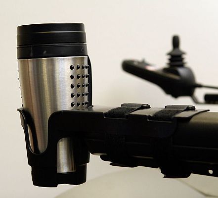 Nearly Universal OH Cup Holder for Mobility Scooters and Powerchairs
