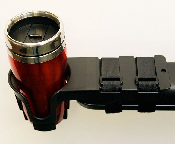 Not only a VARIETY of ARMRESTS, but also a VARIETY of CUPS. Dealing with BIG cups from stadiums has carried over into this product, with a few minor improvements. Each side of the actual cup holder has a slot, allowing coffee mugs of varying sizes to be carried. The OH is also deep enough for those larger sodas or bottled drinks with a webbed design at the bottom allowing moisture or condensation to pass through, eliminating messy liquid pooling.