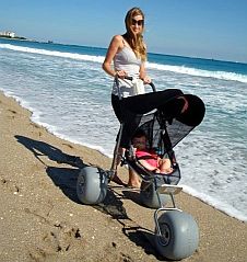 Deming Designs Baby Bug Beach Baby Stroller is specifically designed to for parents who enjoy being outside with their children. Unlike traditional strollers, the Baby Bug features large, low pressure poly urethane wheels that operate easily on virtually all terrains; great for use on grass, gravel, snow or sand, this stroller handles uneven terrain smoothly and easily.