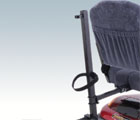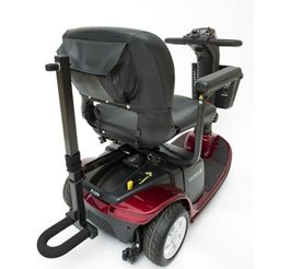 The Pride Quad Cane Holder easily attaches to the universal accessory holder (square shape receiver) mounted on the back of your Pride scooter seat.