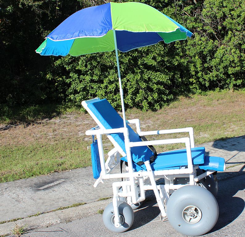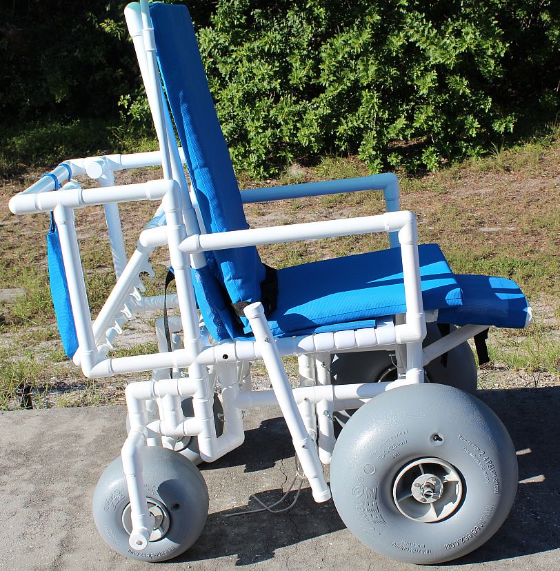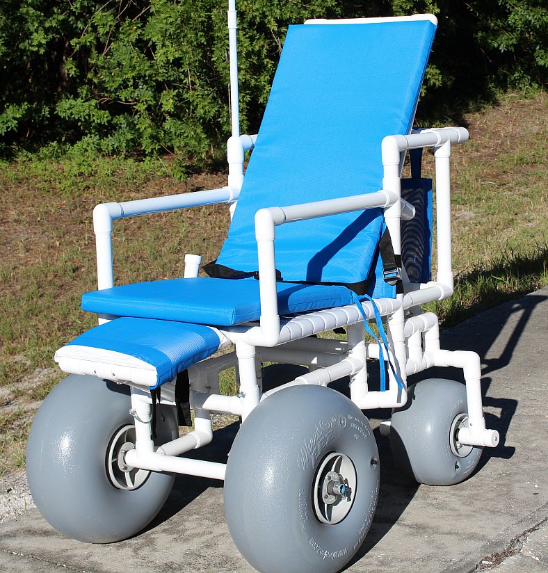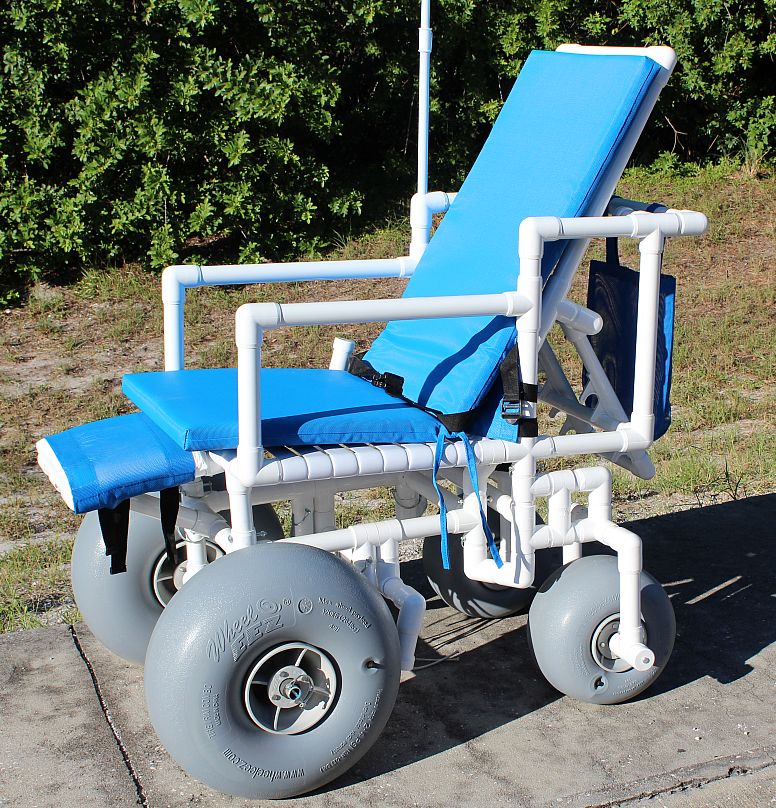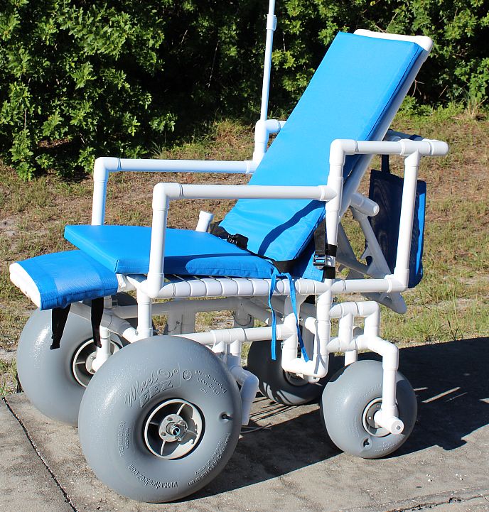 Healthline Wheeleez Reclining Beach Wheelchair w/Front Balloon Wheels and Swivel Back Casters