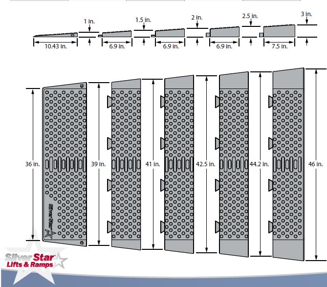 A hidden dovetail locking system allows for easy installation and incremental ramp height adjustment of up to 4 inches.