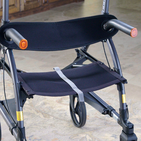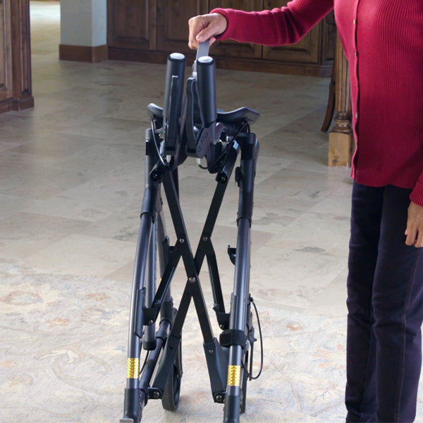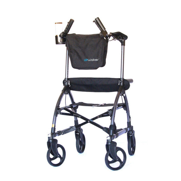 The UPWalker is easy-to-use and was designed with your convenience in mind. It arrives fully assembled and comes with an easy-to-follow User Guide. Just remove your UPWalker from the box, make a couple quick adjustments to personalize it to your preferences and you are ready to go. The UPWalker is easy to fold and lightweight for transporting and storage. The stylish frame is only 23 pounds but is strong enough to support up to 300 pounds on the standard model and up to 350 on the large model. As an added bonus, the UPWalker Original comes standard with a drink holder, seat backrest, and a personal bag.