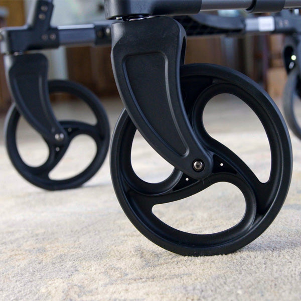 Packed with innovative features, the UPWalker will get you going farther and faster than you thought possible. Large solid rubber multi-terrain wheels help you smoothly traverse bumpy and uneven surfaces. The padded sit-to-stand handles make transitioning between sitting and standing easier and safer. The armrests are padded and height adjustable to allow users of varying heights to stand tall and look forward with confidence and dignity. The comfortable fabric seat features a backrest support that slides front to back for sitting or walking. Easy to use ergonomic handbrakes all for better control, stopping and parking.