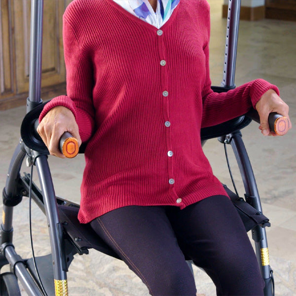 The UPWalker Original Backsaver Rollator is designed to allow you to stand upright and look ahead while walking to provide the user with a healthier, safer, and more dignified walking experience. This revolutionary rollator restores activity and independence for the elderly and those with mobility challenges, including users with orthopedic, neurological, cardiovascular, and other health disorders. The UPWalker’s unique design has been shown in clinical research to reduce pain in the wrists, back and leg joints when compared to traditional walkers. With the UPWalker you can look straight at your friends and loved ones instead of having to hunch over and look at the ground.