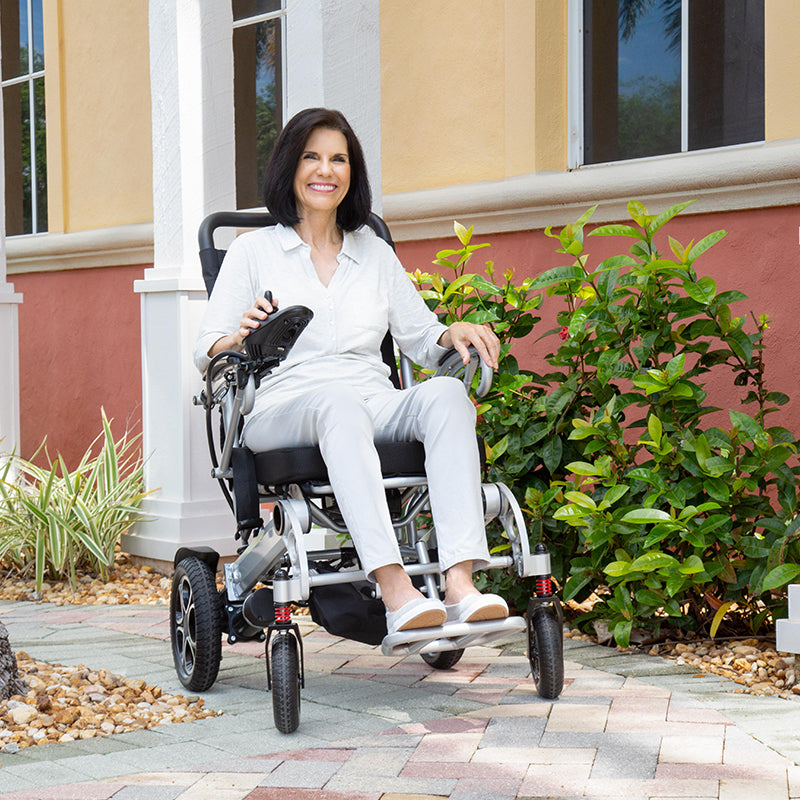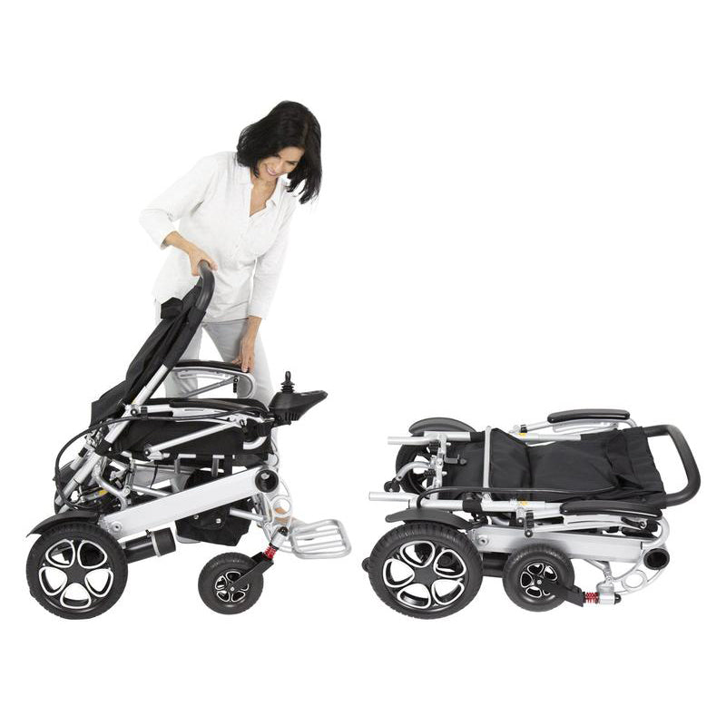 Folding in seconds, the power wheelchair is ideal for air travel, cruise ship travel and similar outings