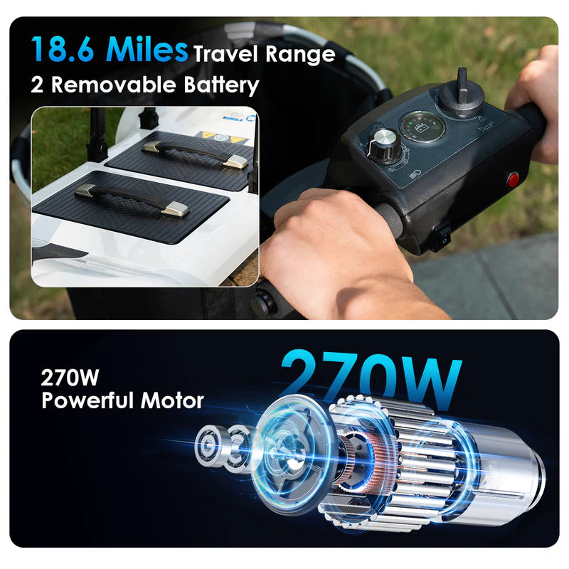- Durable, lightweight construction—total weight with battery is just 39.7 lbs.—ensures hassle-free lifting and storage, while a removable front basket provides convenience on the go.