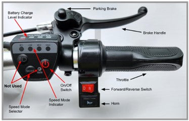 - Control Panel, 3 speeds for all situations, forward and reverse, battery indicator and forward/ reverse functionality