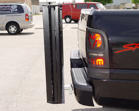 - Ramp easily lock into a folded upright position with spring pull locks
