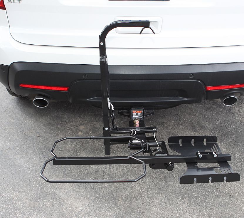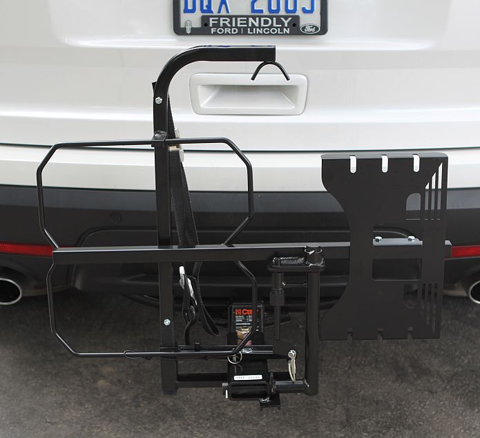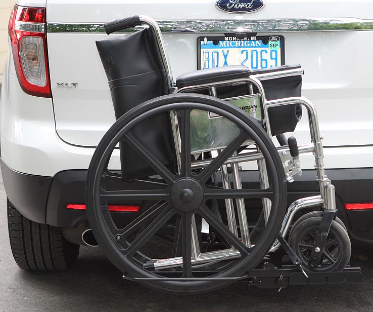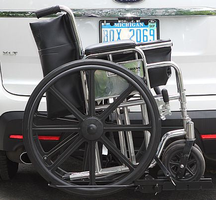 This carrier is designed for a standard folding wheelchair. It's so easy to use and there is no lifting required!