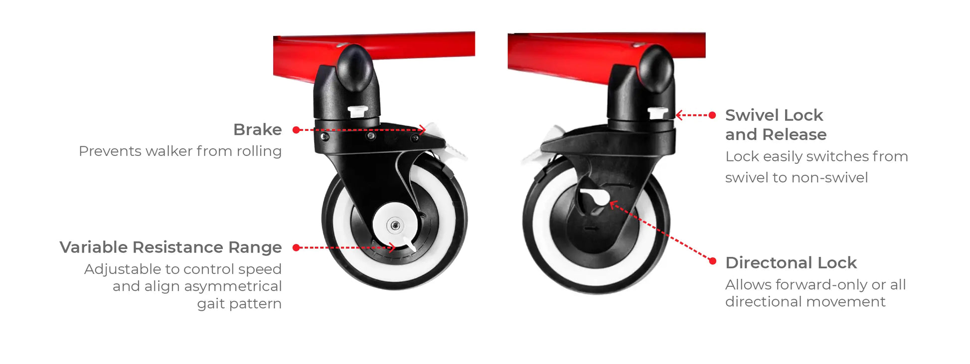 - Ruedas giratorias delanteras y traseras de 4 funciones