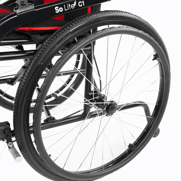 Esta silla de ruedas ligera fue diseñada pensando en la seguridad. Las dos ruedas traseras antivuelco evitan que la So Lite se incline hacia atrás y proporcionan mayor equilibrio y soporte. El sistema de frenos incluye frenos de mano para empujar la silla y bloqueos manuales para evitar que la So Lite se mueva cuando no se desea. Las ruedas antipinchazos no requieren mantenimiento y las ruedas delanteras giratorias ofrecen mayor maniobrabilidad para un viaje suave en todo momento.