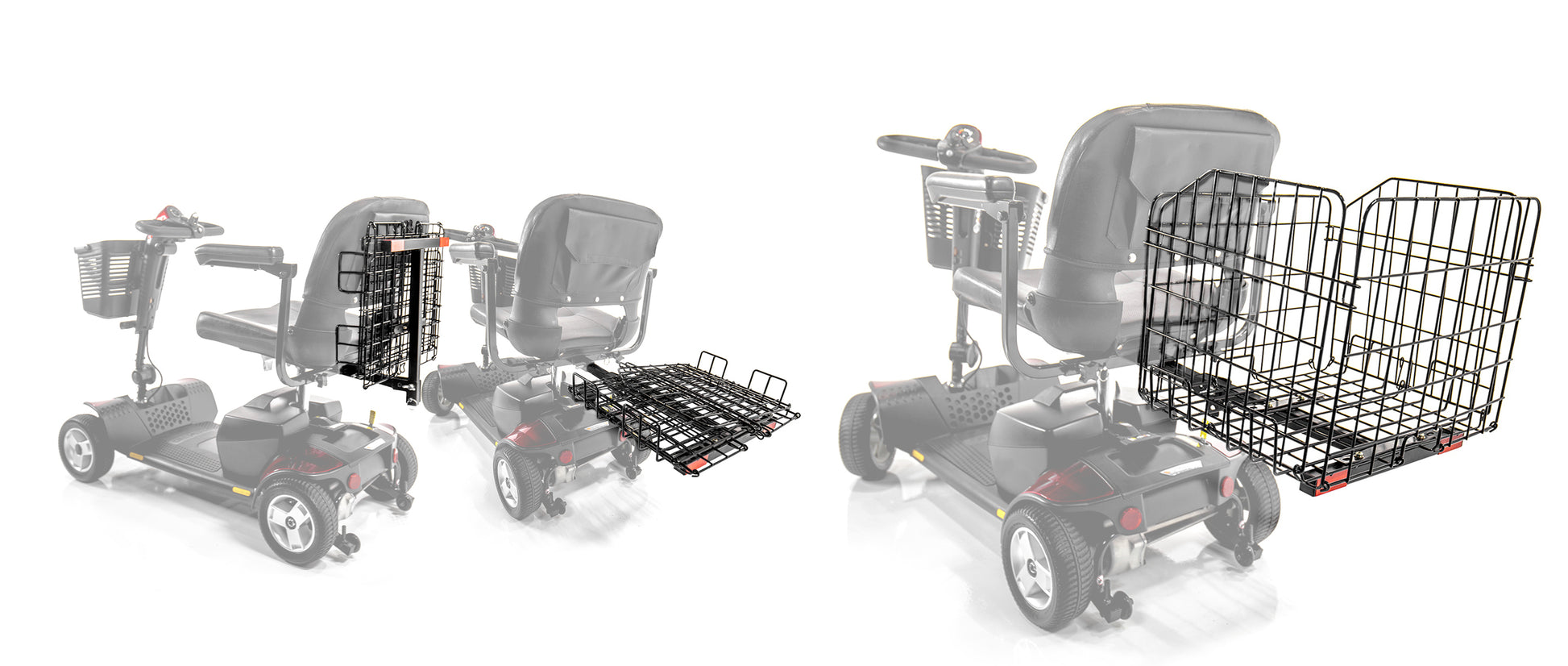Although most mobility scooters come with a small front basket, oftentimes you need a larger storage compartment to assist you with your everyday needs, like being able to carry your shopping bags, groceries, an oxygen tank or even your favorite furry friend while both hands are safely on the tiller navigating your scooter.